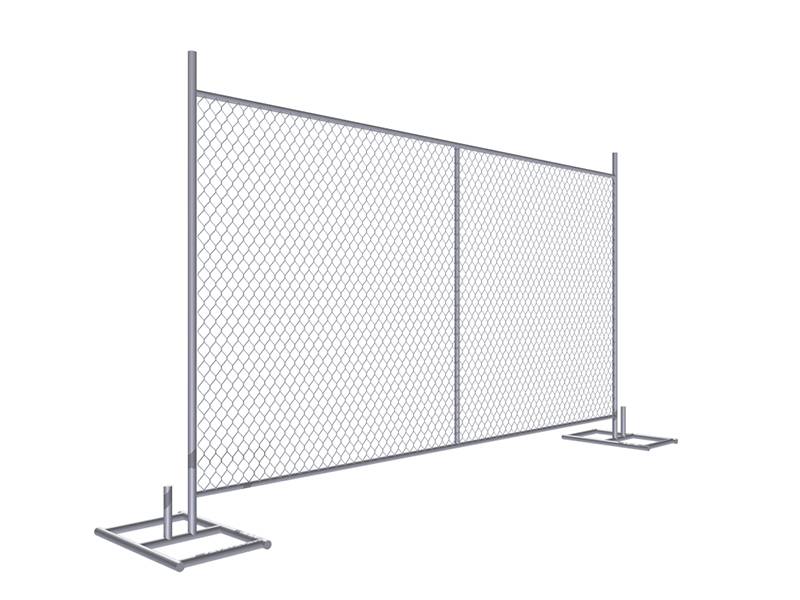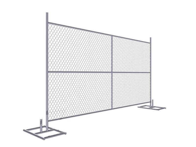 The 6' × 10' temporary chain link fence has a height of 6 ft and a width of 10 ft. It is made from high-quality mild steel wire and galvanized tubes. The infill mesh and frame pipe are tightly secured together using tension bars and tension bands. As a manufacturer, we offer three types of stable panel feet: square, oval, and flat shapes for your selection. The finished fence is strong and durable enough to meet all site-specific requirements, including uneven ground or sloping sites.